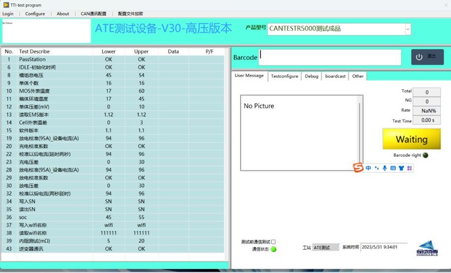 本设备用于实现储能系统绝缘、总压、电芯压差、DCIR、充放通讯等功能的自动测试,设备主要包含CAN卡、充放电机、绝缘耐压仪、万用表、继电器切换系统及配套电控系统、上位机软件。设备根据测试项目要求进行合格与不合格品自动判别,自动记录、保存测试数据,上传到MES系统。可以实现设备上下游生产能力的匹配,满足生产工艺需求。